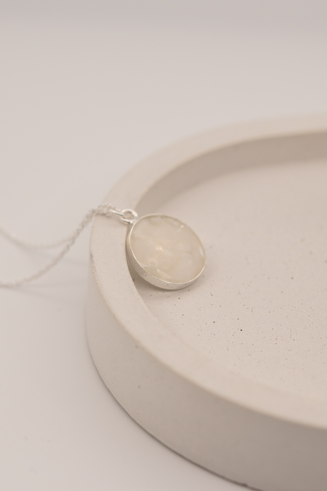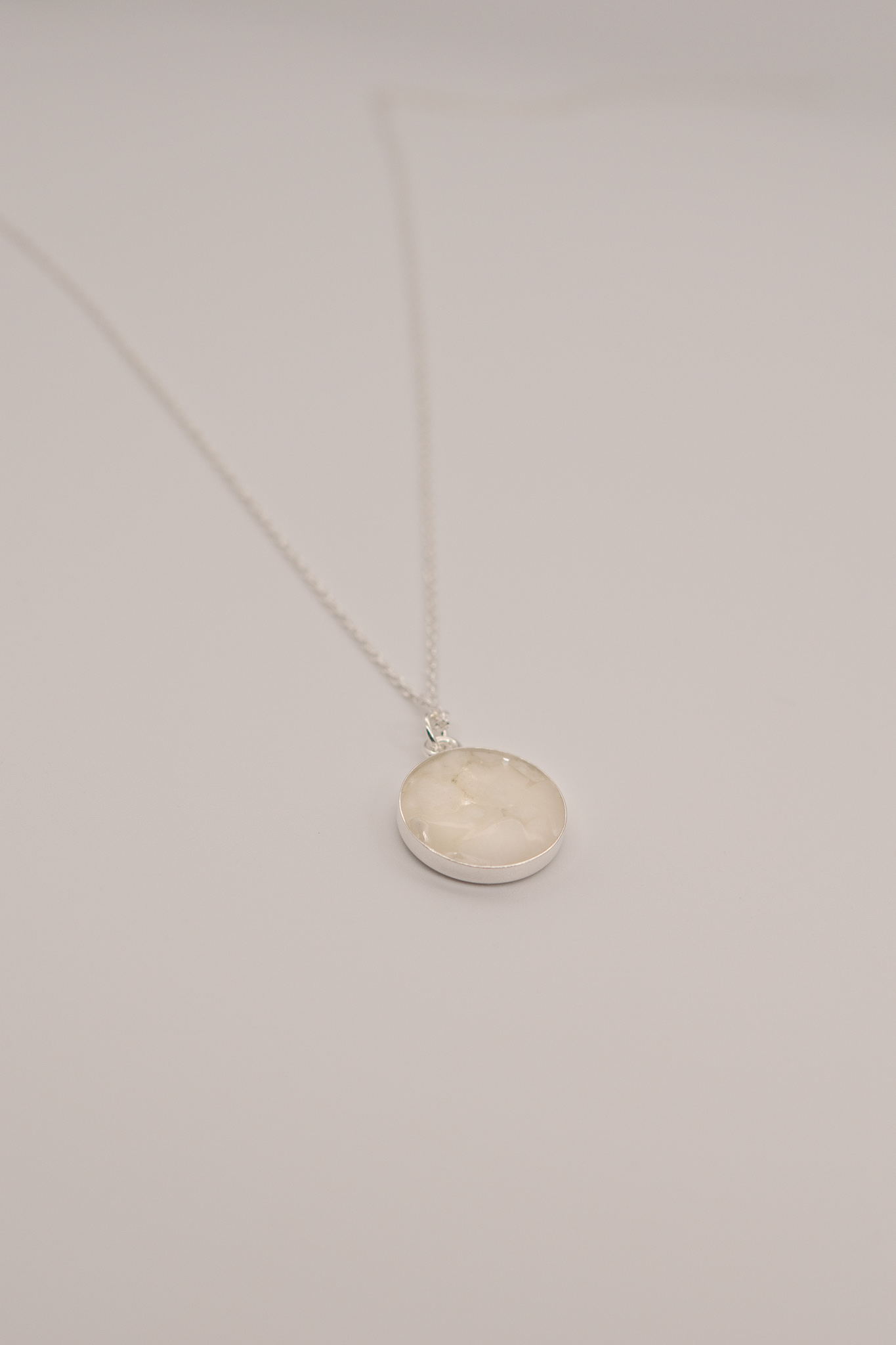 Náhrdelník má rozměr přívěsku ø 8 mm nebo ø 15 mm a délku řetízku 45 cm. Materiál řetízku je Ag925 a materiál lůžka je postříbřená šperkařská ocel. Hmotnost 1 ks přívěsku je cca 1 g a 1 ks řetízku cca 1 g.