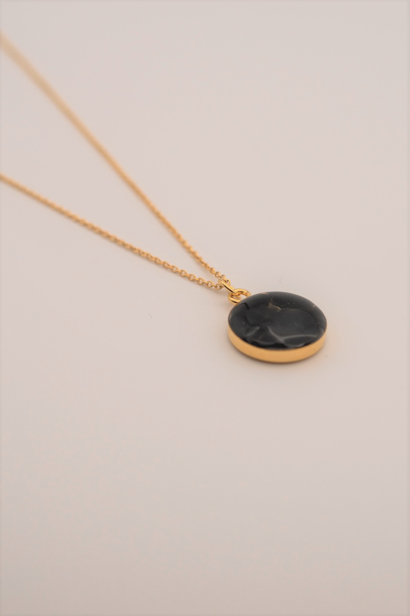 Náhrdelník má rozměr přívěsku ø 15 mm a délku řetízku 45 cm. Materiál řetízku je Ag925 pozlacený 24 K zlatem a materiál lůžka je pozlacená šperkařská ocel. Pozlacení je tvořeno dvěma vrstvami pro vyšší odolnost. Hmotnost 1 ks přívěsku je cca 1 g a 1 ks řetízku cca 1 g.